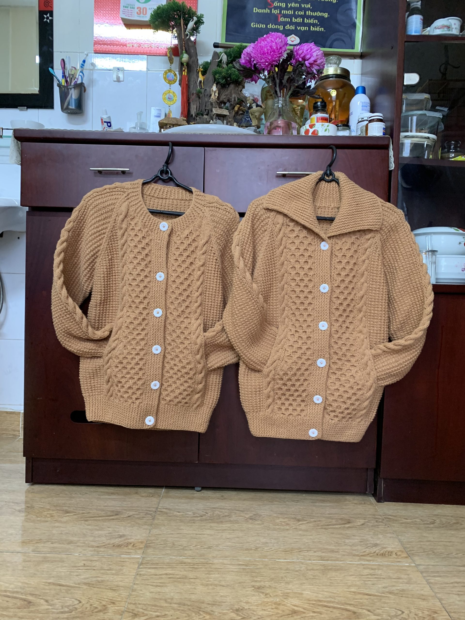 Áo đan tay màu vàng đồng